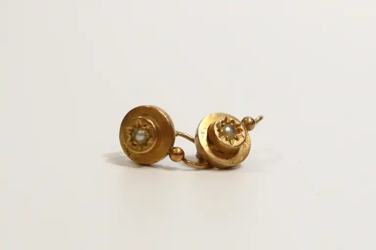 Lot de trois bijoux : - Deux paires de boucles d'oreilles dormeuses en or jaune serties de petites perles ou petites pierres. Poinçons Tête de cheval et Tête d'aigle.