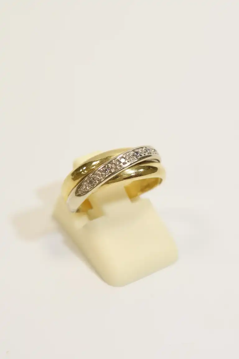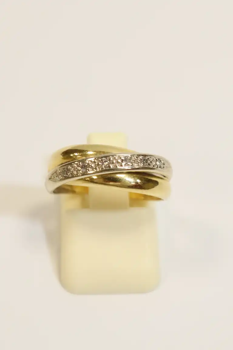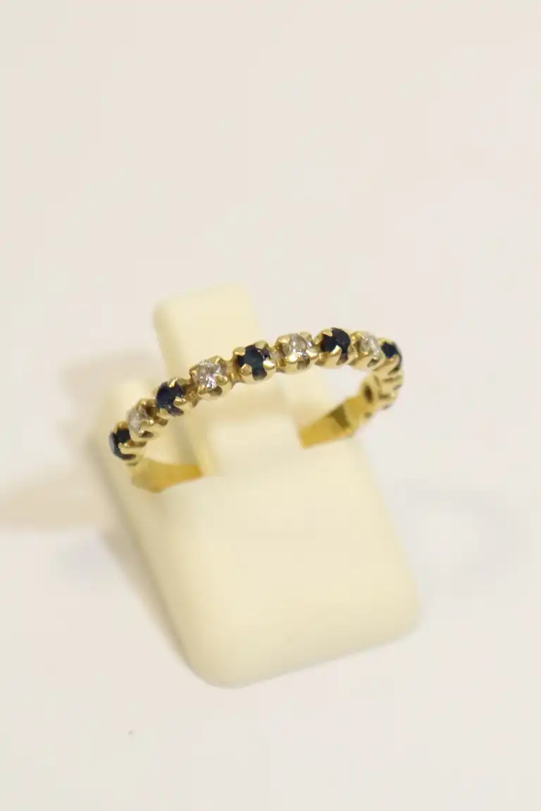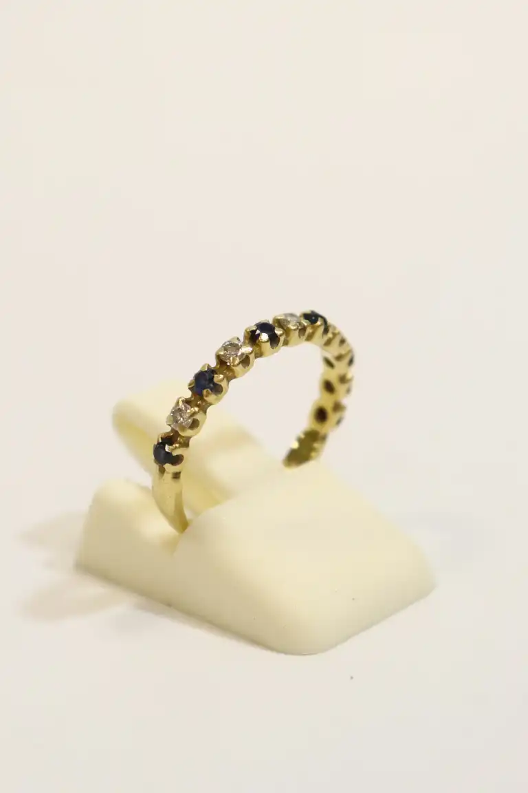 Lot comprenant deux bagues en or jaune 18K (750), l'une demi-alliance sertie de 5 brillants et 5 saphirs. Poids brut : 5.17 g