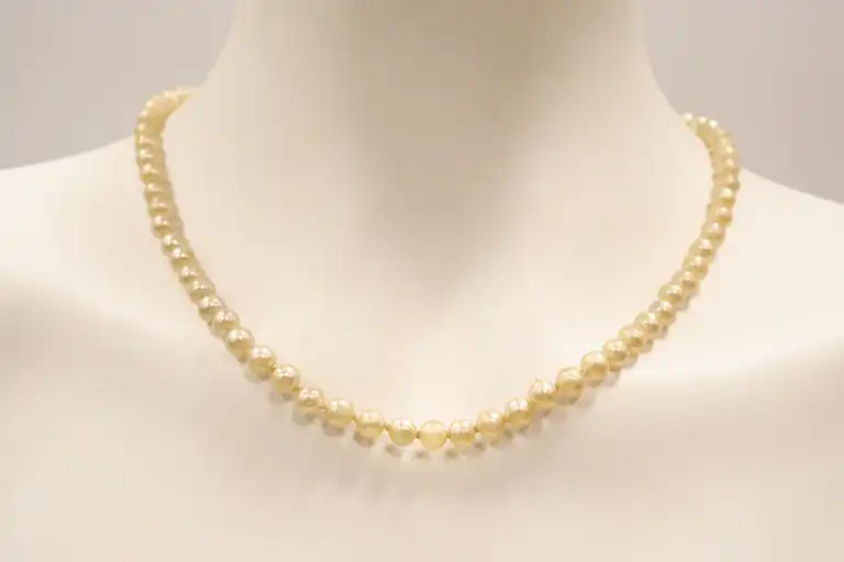 Joint : collier de perles avec fermoir en or jaune 18K (750). Poids (fermoir) : 1.08 g env.