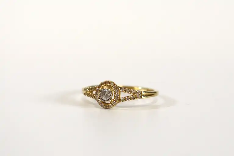 MAUBOUSSIN. Bague en or jaune 18K (750) sertie d'un brillant central, collection "Vie, Liberté et Amour". Signée et numérotée. Poinçon tête d'aigle. TTD.: 51. Poids brut :1.64 g