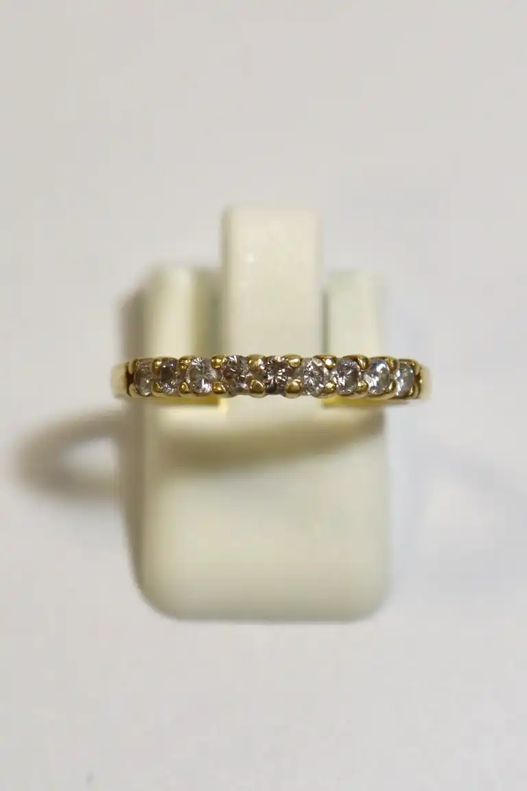 Demi-alliance en or jaune 18K (750) sertie de 9 brillants. Poids brut : 2.46 g