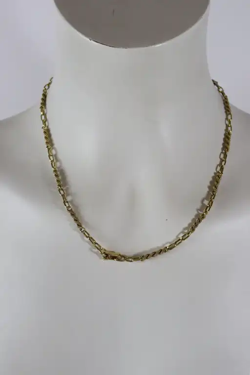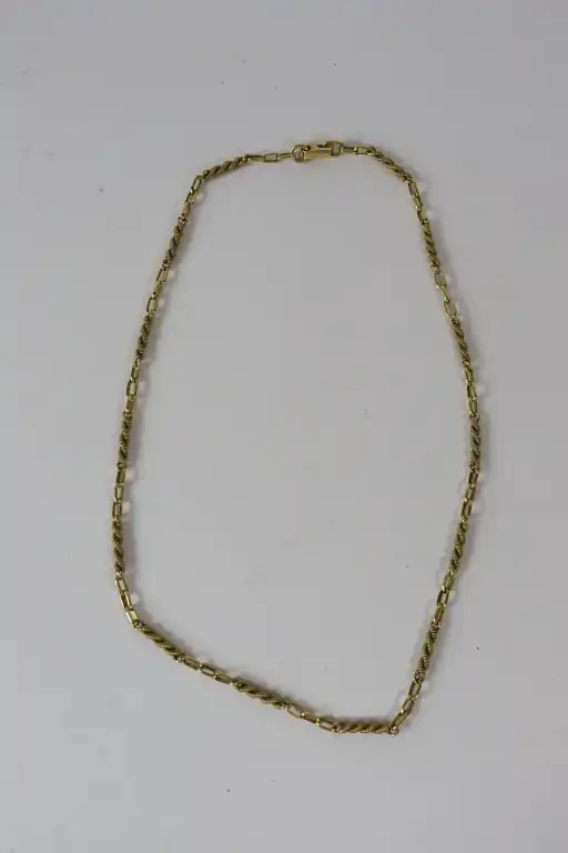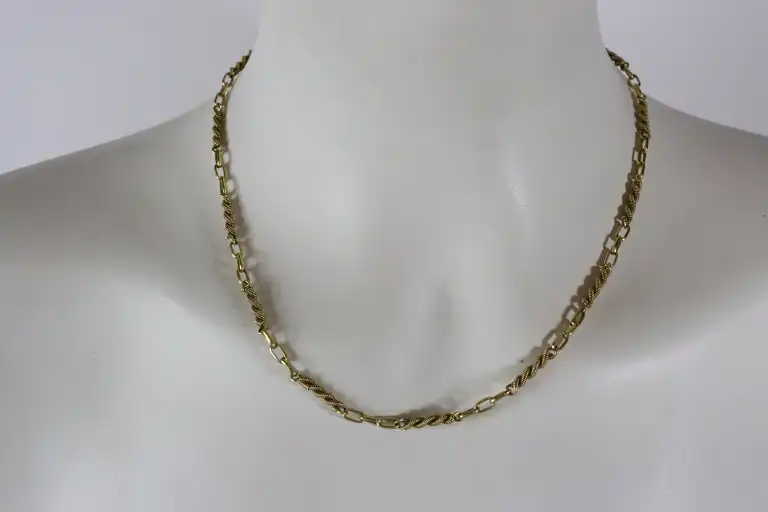 Chaîne de montre en or jaune 18K (750) à mousqueton. Poids : 19.19 g