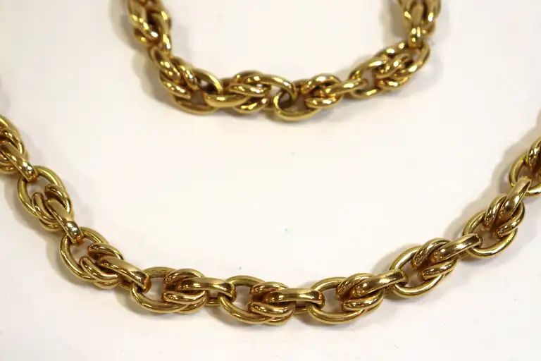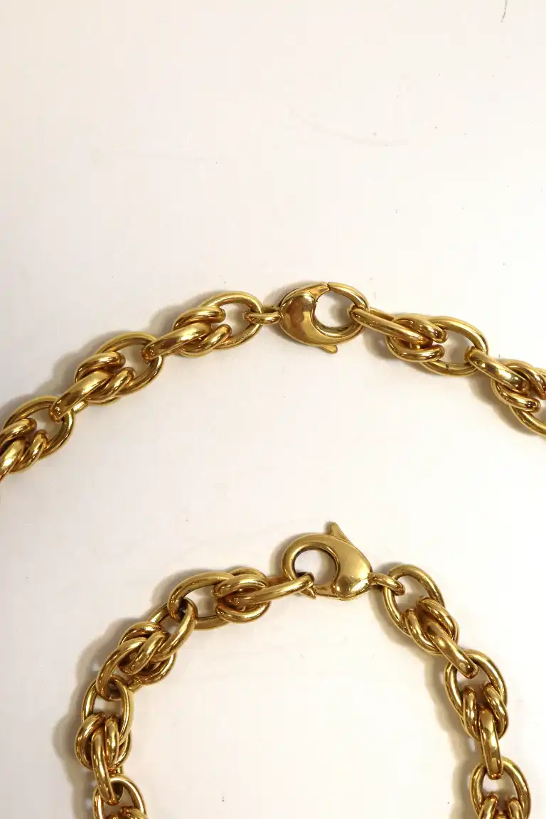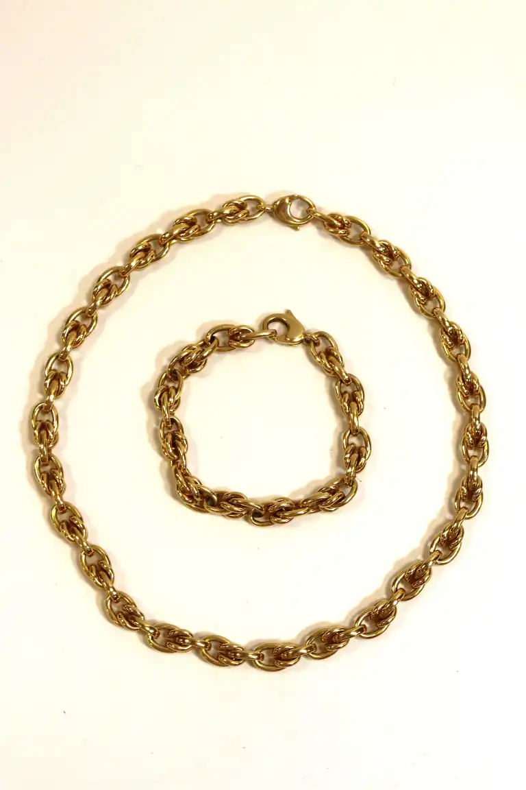 Collier et bracelet en or jaune 18K (750) à mailles torsadées. Poinçons tête d'aigle. Poids : 45.3 g