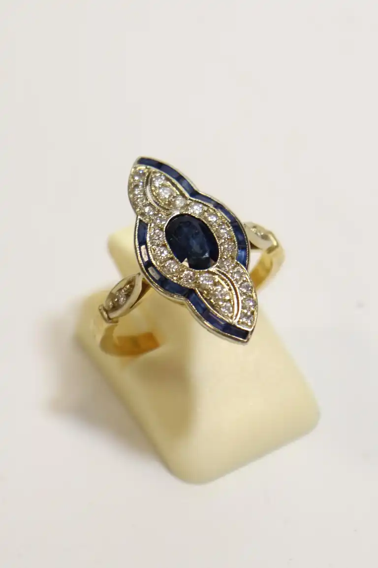 Bague en or jaune 18K (750) sertie de saphirs et brillants. Poinçon tête d'aigle. TTD.: 52. Poids brut : 3.68 g