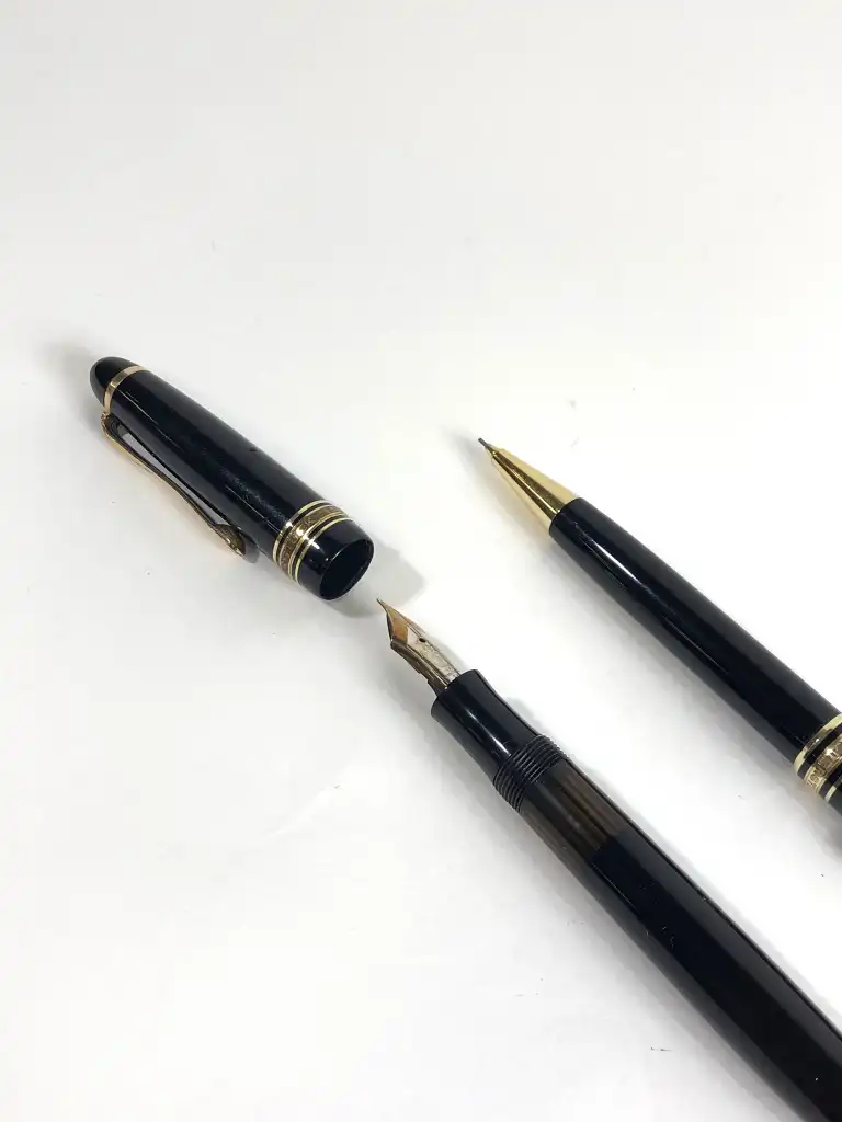 - Porte-mine en résine noire et attributs dorés.