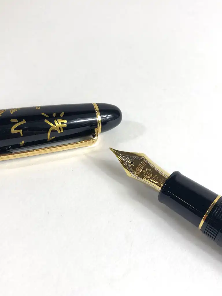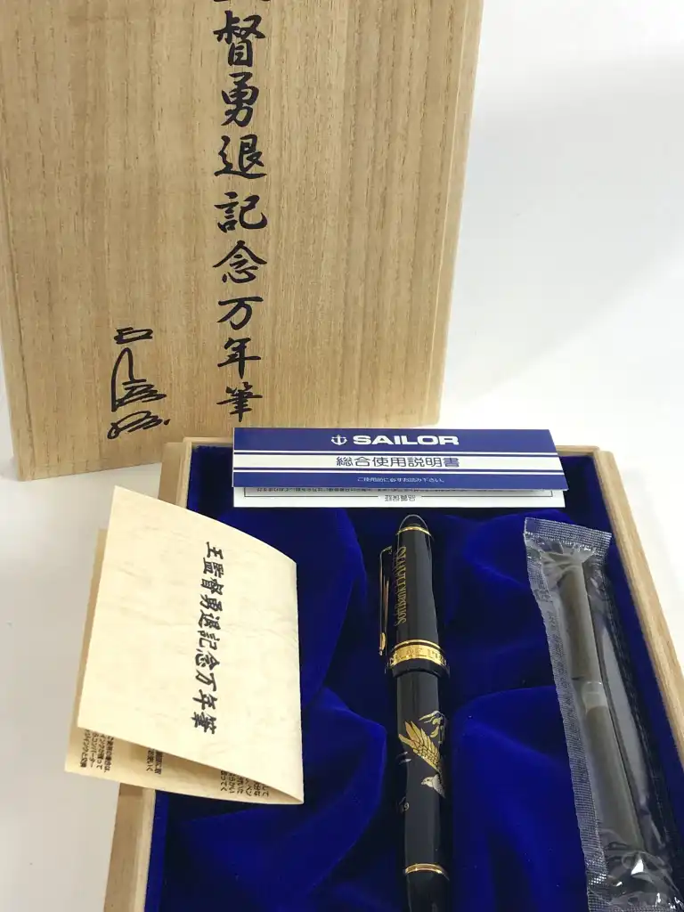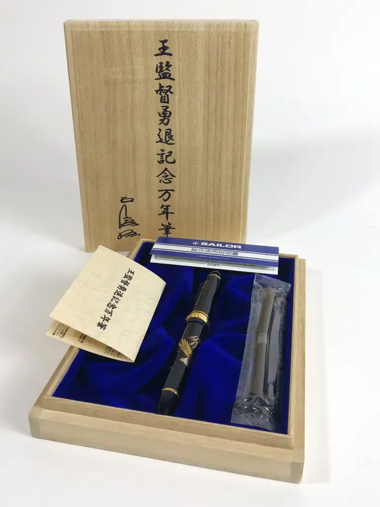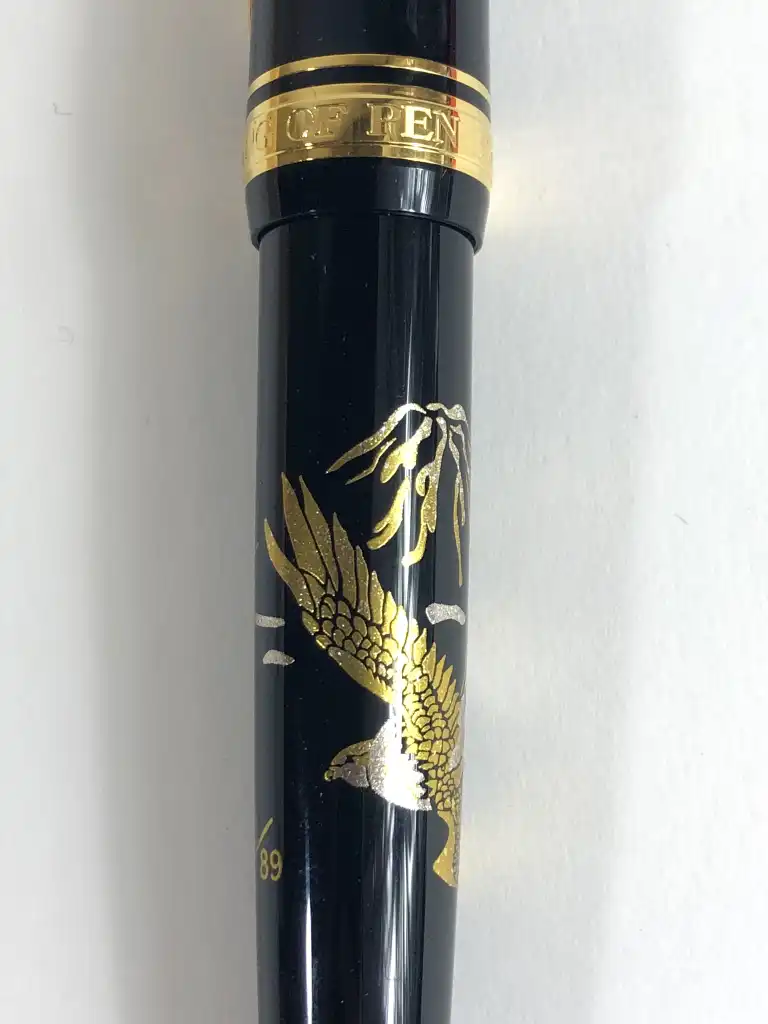 SAILOR. Modèle SoftBank Hawks. Stylo plume laqué noir à décor d'aigle et montagne. La plume en or jaune 21 K (875).