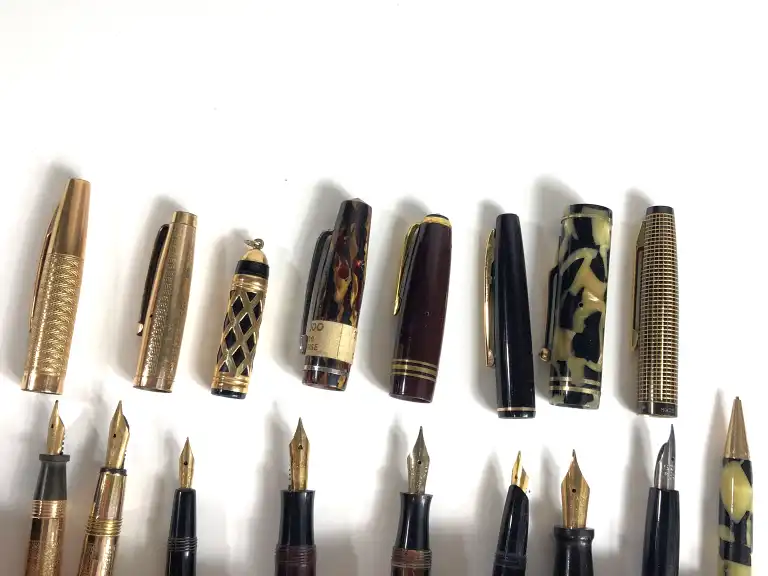 - un stylo plume à résille brune et dorée. Plume en or jaune 18 K (750).