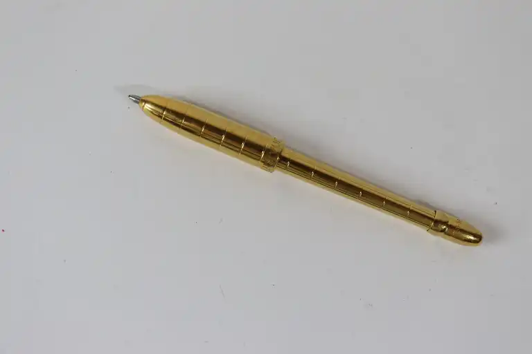 Lot de deux stylos : - LOUIS VUITTON. Petit stylo bille de sac en métal doré à motif de quadrillage.