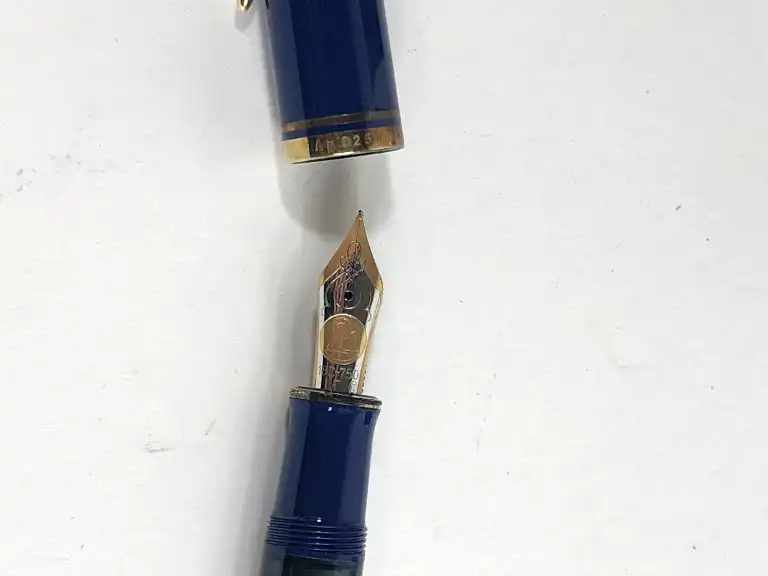 PELIKAN. Modèle Technology. Edition spéciale Expo 2000 Hannover. Stylo plume résine bleu nuit et argent massif 925 à décor de circuit imprimé. Plume en or bicolore 18 K (750). Numéro 0814.