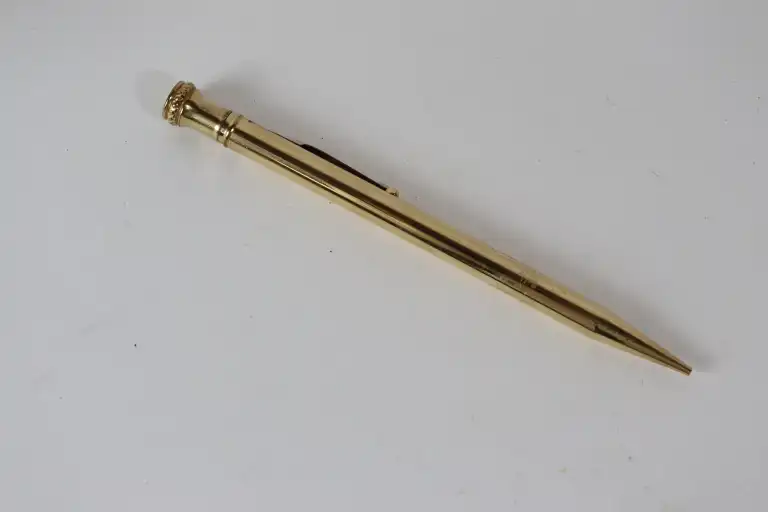MORRISSONS. Lot de trois stylos en métal doré : un stylo plume et un porte-mine.