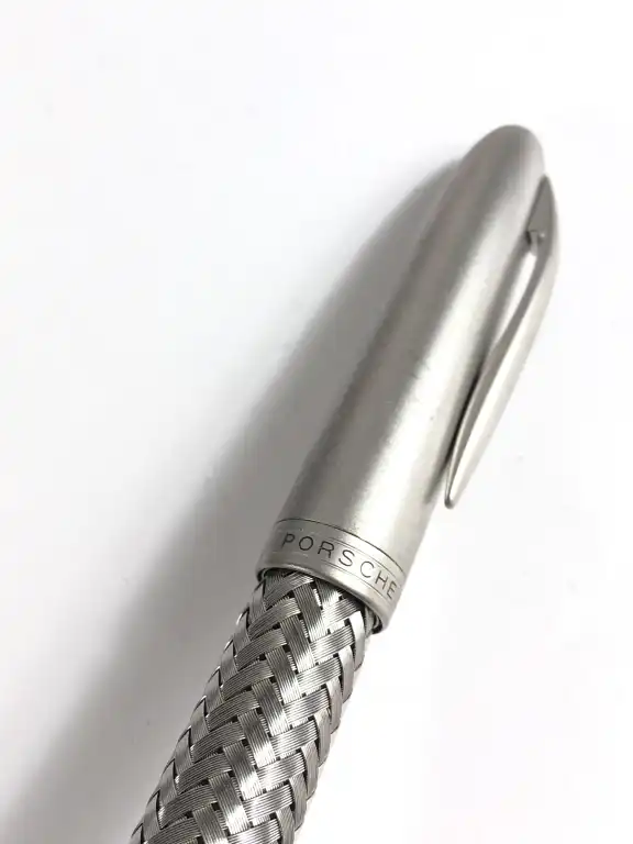 - un stylo plume PORSCHE DESIGN en acier tressé, plume en or gris 18 K (750).