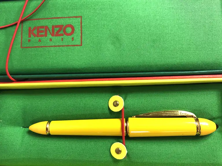 - KENZO. Stylo plume en résine jaune. Dans son coffret, certificat et sur-boite.