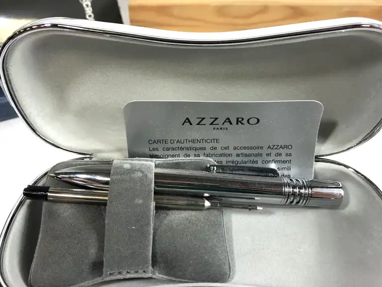 - AZZARO. Stylo bille en acier chromé dans son étui.