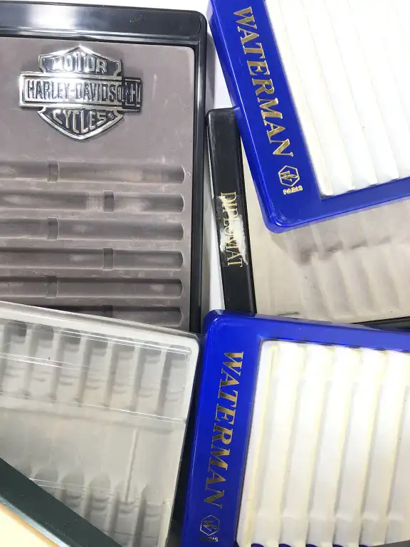 Lot de onze présentoirs à stylos, comprenant : - un présentoir HARLEY DAVIDSON à 12 emplacements.