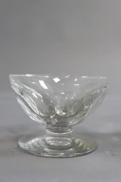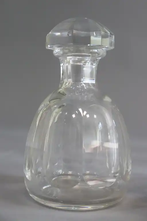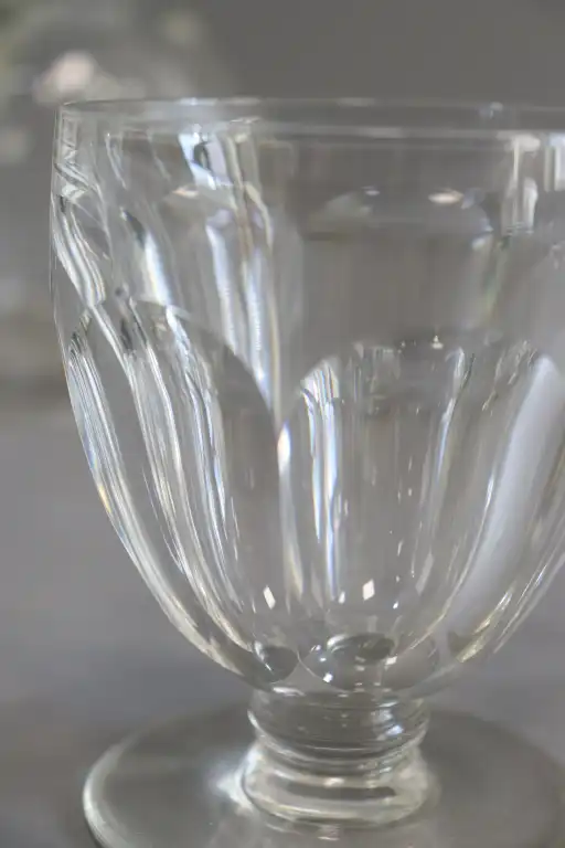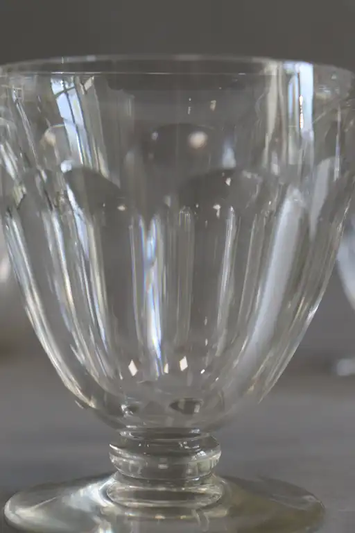 BACCARAT. Partie de service de verres en cristal de 43 pièces, comprenant : dix-huit coupes à champagne, huit verres à eau, quinze verres à porto et deux carafes. (Eclats pour cinq coupes, un égrenure pour un verre à vin)