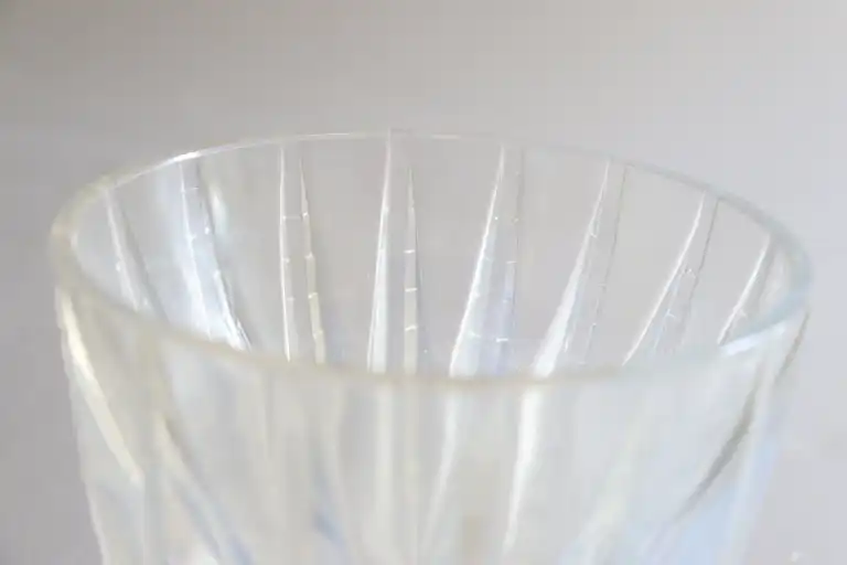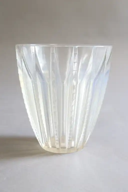René LALIQUE (1860-1945). Modèle Chamonix. Vase en verre opalescent moulé-pressé. H.: 15 cm. Non signé. Entre 1933 et 1947. (Infimes égrenures au-dessous).