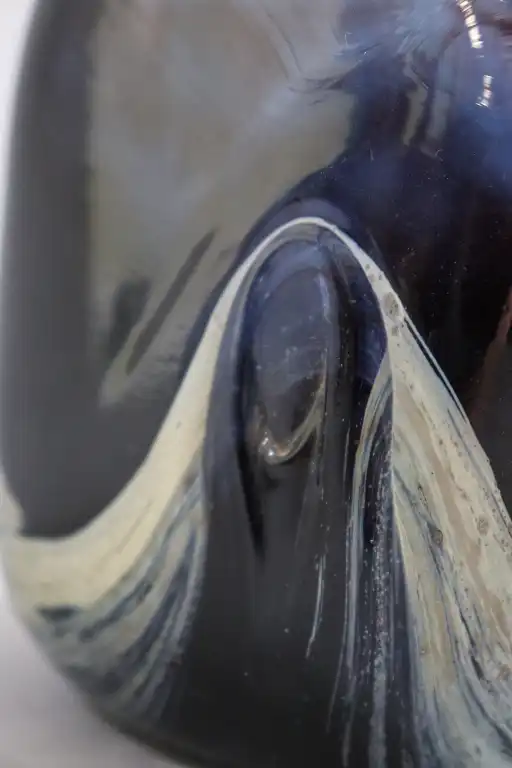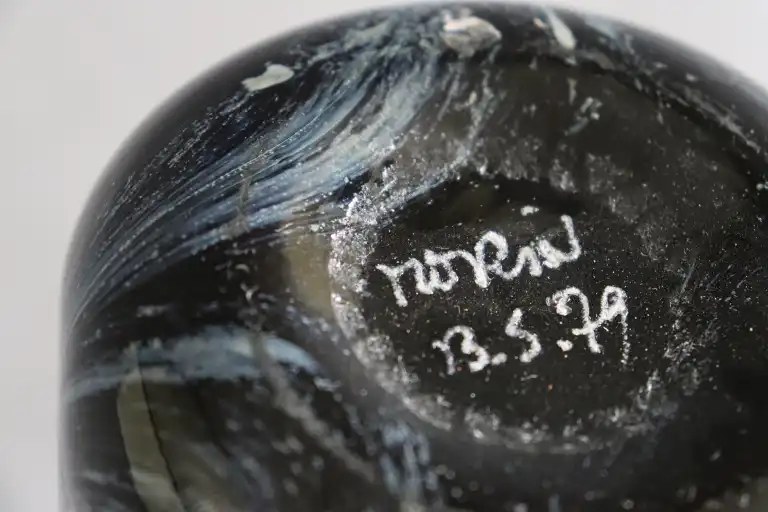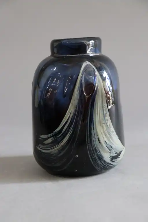 Claude MORIN (1932-2021). Vase en verre soufflé multicouche dans les tons bleus. Signé au-dessous et daté 13.5.79. H.: 16.5 cm