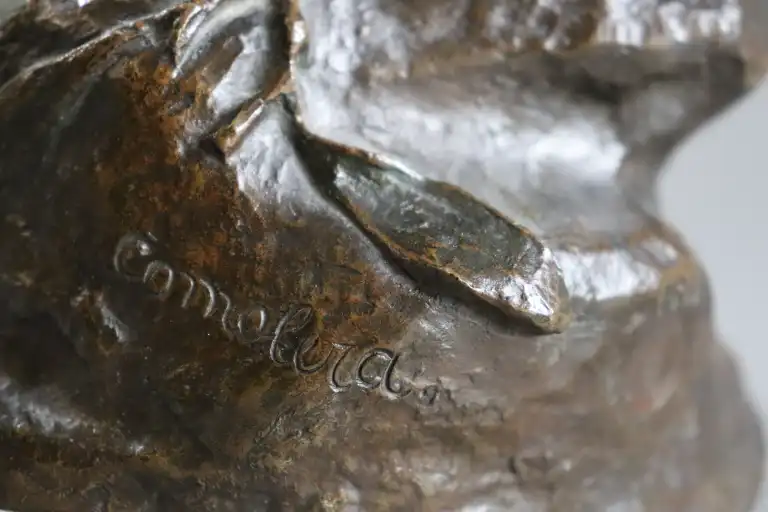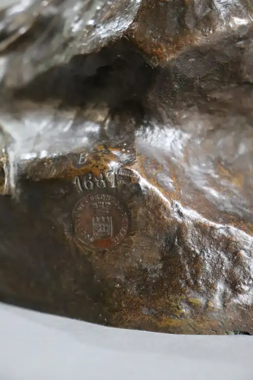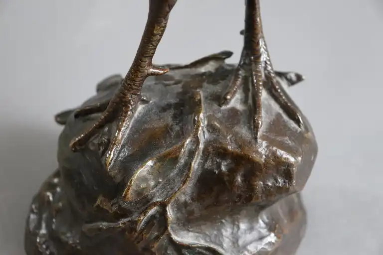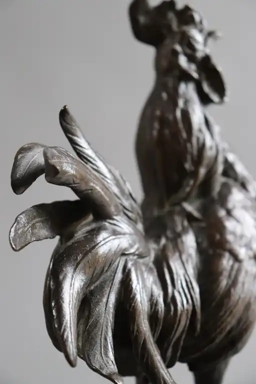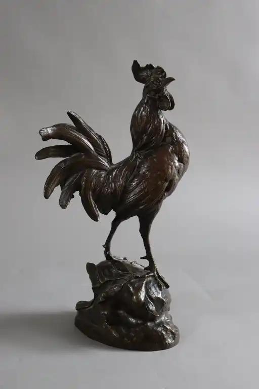 Paul COMOLERA (1818-1897), d'après. Coq. Epreuve en bronze à patine brune. Signée en creux, numéroté 168 et cachet société des bronzes de Paris . H : 35 cm