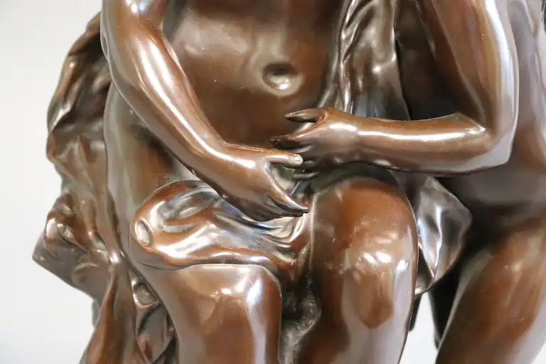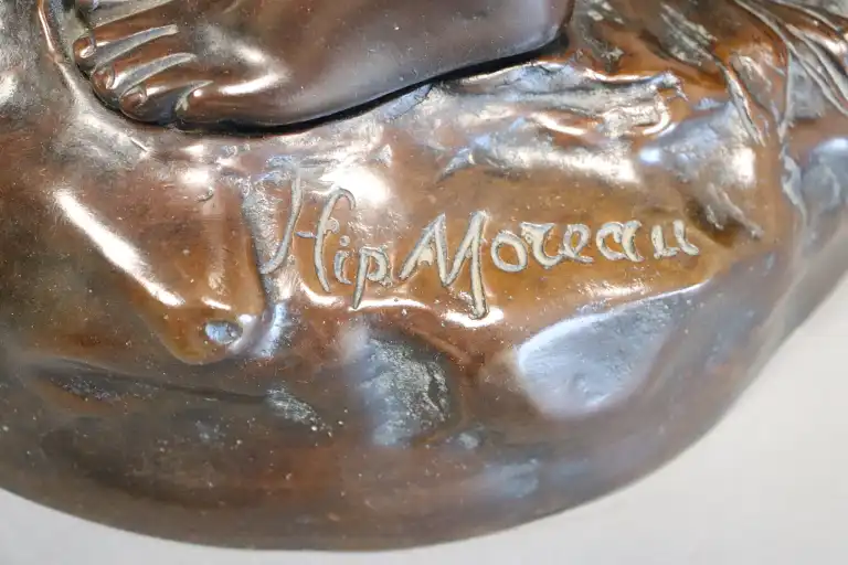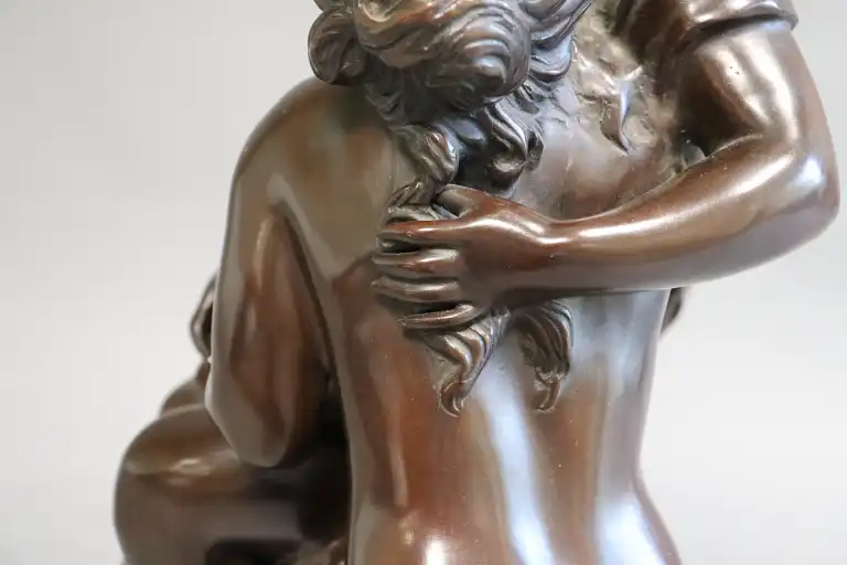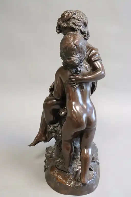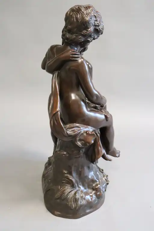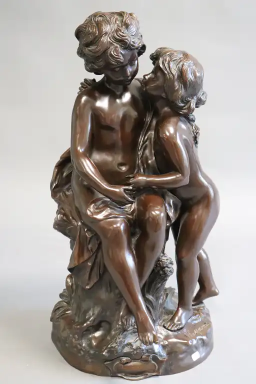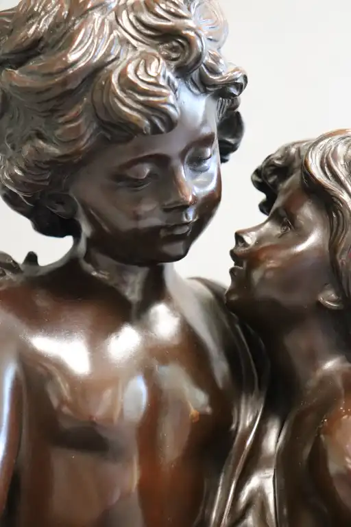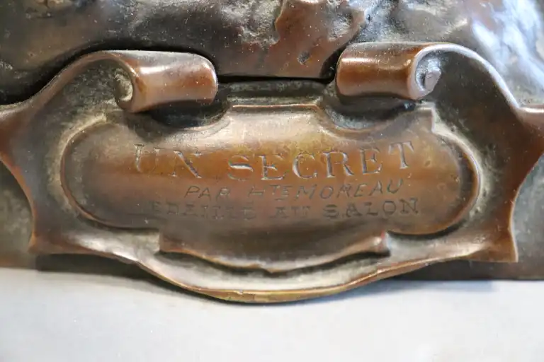 Hippolyte François MOREAU (1832-1927), d'après. Un secret. Epreuve en bronze à patine brune, signé en creux et inscrit dans un cartouche Le Secret / par Hte MOREAU / Médaillé au salon . H.: 64 cm