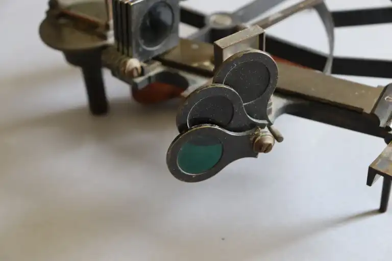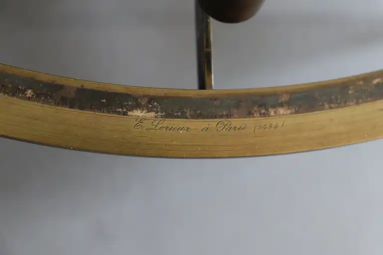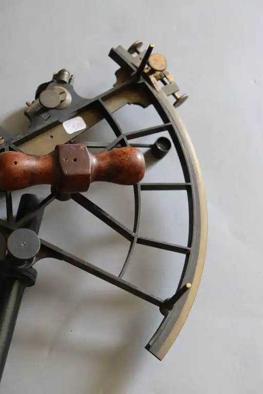 INTRUMENT DE MARINE. Sextant en laiton et métal à patine noire, la prise en bois. Signé E. LORIEUX à Paris. Diam.: 25 cm