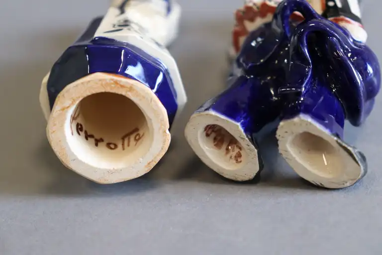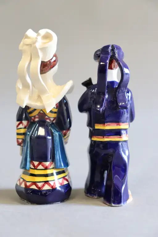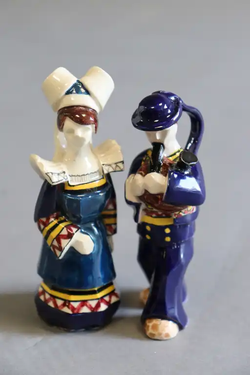 PERROTTE. Couple de bretons en faïence polychrome en costume traditionnel. Signés sous la base. H. : 10 et 10.5 cm