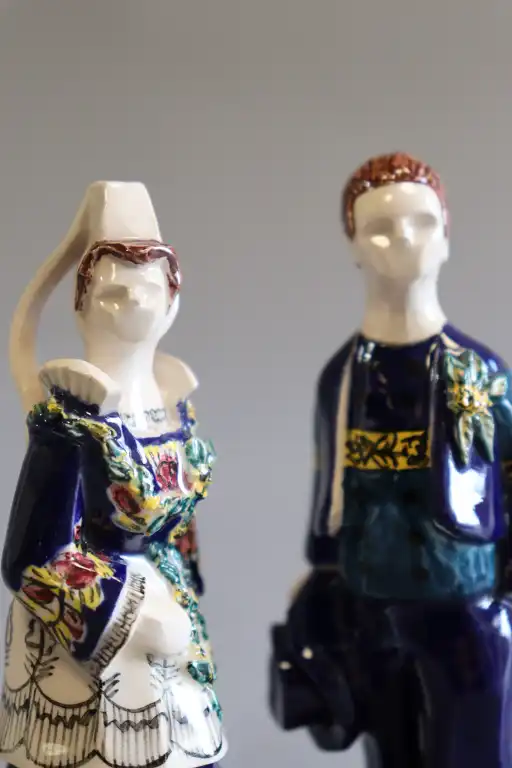 PERROTTE. Couple de bretons en faïence polychrome en costume traditionnel. Signés sous la base. H. : 9.5 et 10 cm