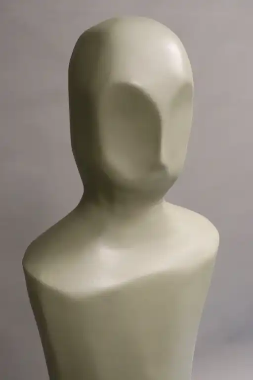 Manufacture de CHAROLLES. Epreuve en faïence verte figurant une femme stylisée, modèle Gaia. H.: 133 cm