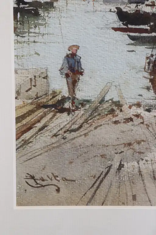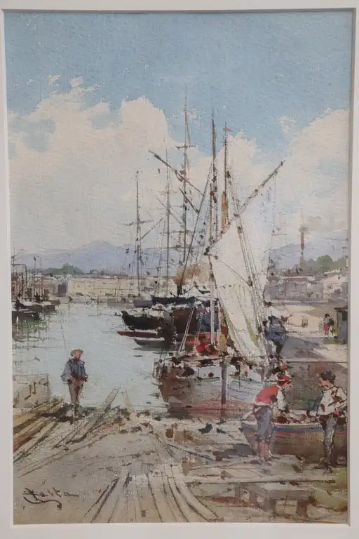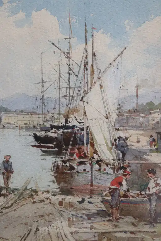 Emmanuel COSTA (1833-1921). Port animé. Aquarelle, signée en bas à gauche. 29.5 x 19.5 cm à vue