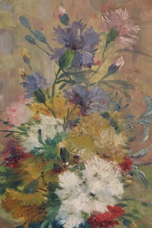 Eugène-Henri CAUCHOIS (1850-1911). Bouquet de printemps et bouquet d'hiver. Deux huiles sur toile en pendant, signées en bas à droite. 61.5 x 30 cm. (Une étiquette collée dans un angle en haut à droite, étiquette absente sur le second qui a laissé une trace)