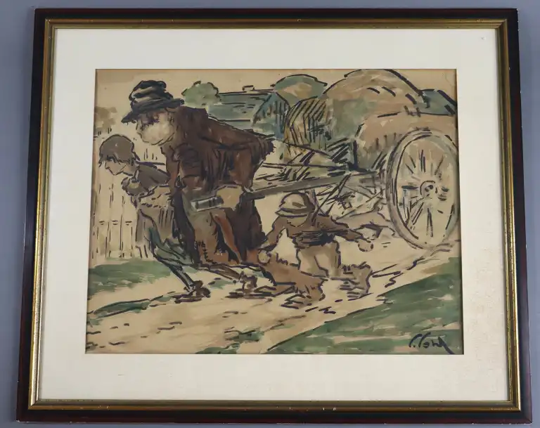 Prudent POHL-ZANAROFF (1885-1966). La Charrue. Aquarelle, signée en bas à droite. 45.5 x 59 cm à vue