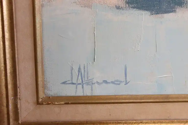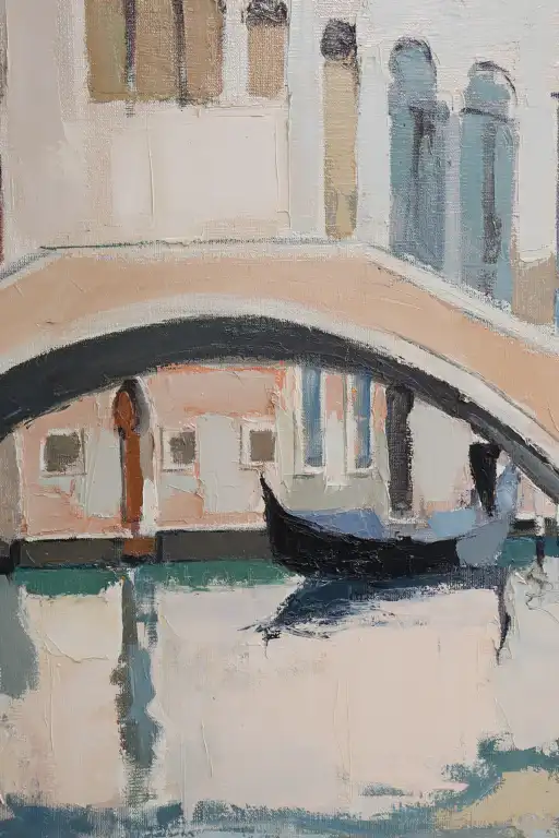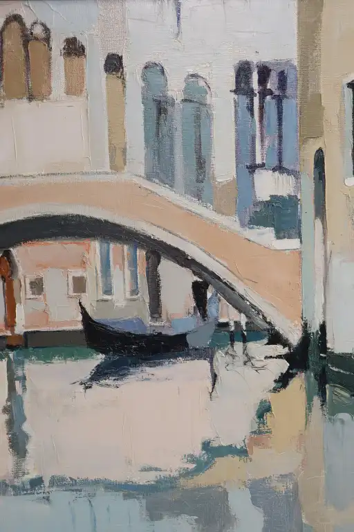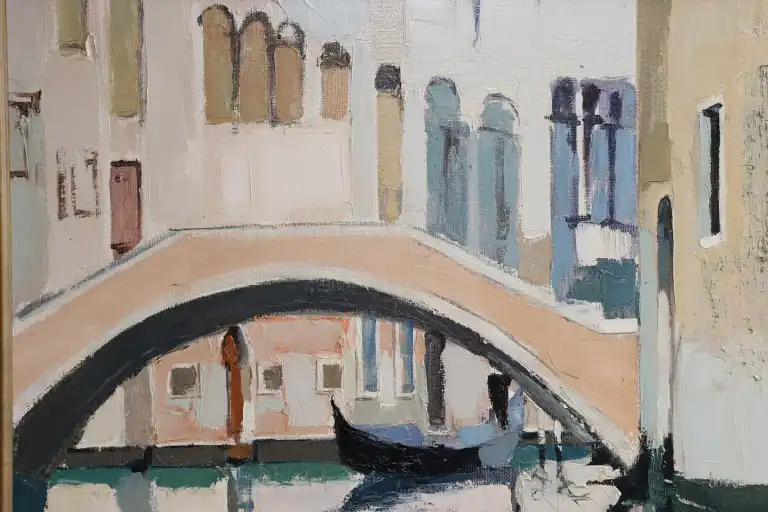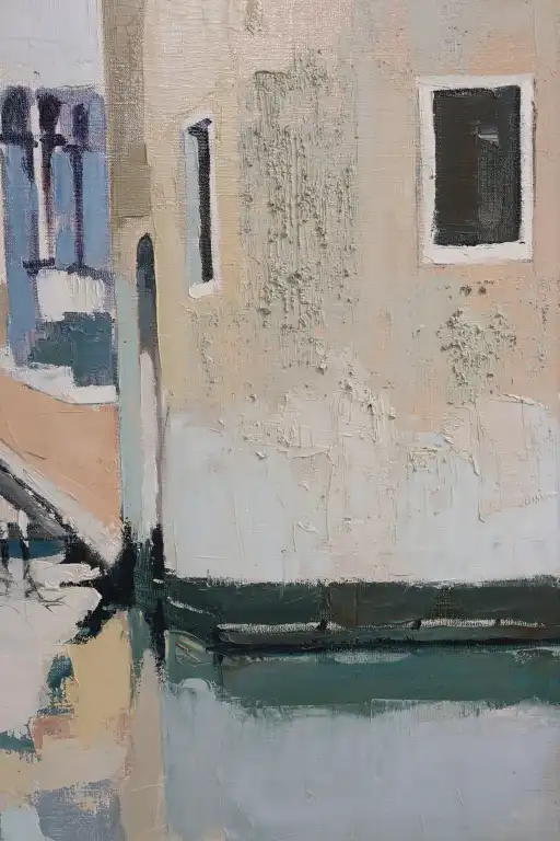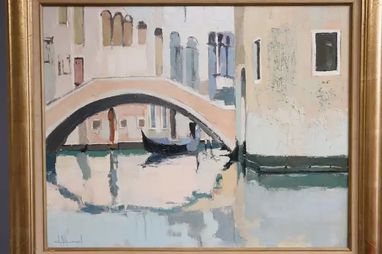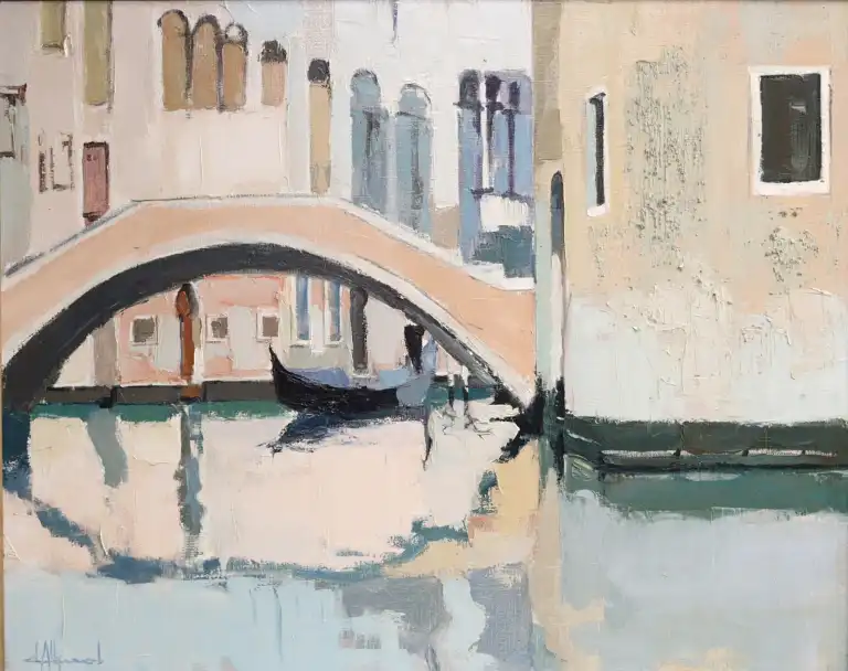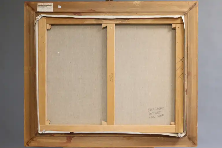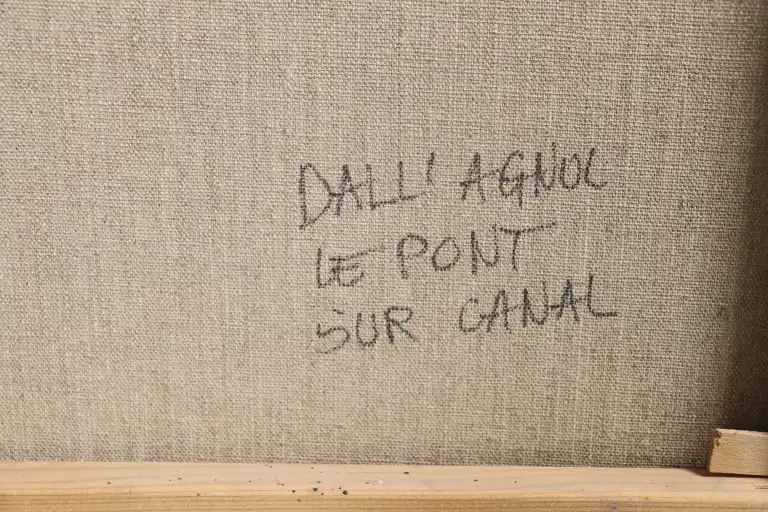 Dominique DALL'AGNOL (1931-2009). Canal à Venise. Huile sur toile, signée en bas à gauche et contresignée au dos. 66 x 81 cm