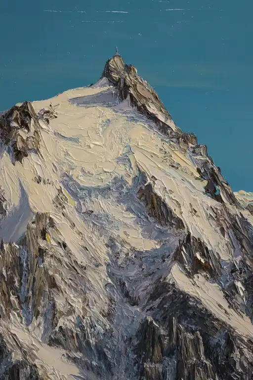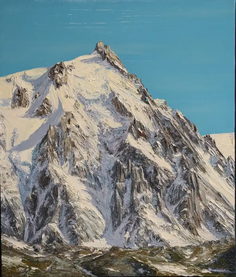 Philippe FESCOURT (né 1954). L'Aiguille du Midi. Huile sur toile, signée en bas à droite. 55 x 46 cm
