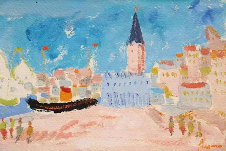 Jean FUSARO (né en 1925). Vue de Venise. Gouache, signée en bas à droite. 16 x 27 cm