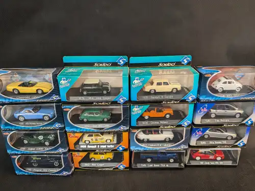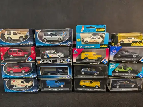 SOLIDO. Lot de 16 véhicules en boîte. En l'état.