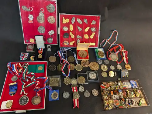 Important lot de médailles, essentiellement sportives. Dont certaines en bronze. Exemples : "CHampionnat de France d'Athlétisme", " Trofée du SCEX CARRO", "Marathon de PAris", etc.