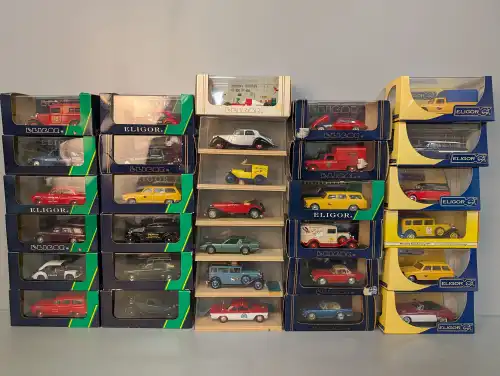 ELIGOR. 31 voitures sous boîte. En l'état.