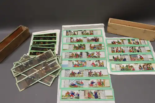 Lot de 2 boites en bois contenant des plaquettes de verre animées