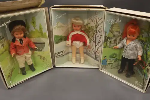 GEGE. Trois poupées en plastique dans leur boîte comprenant : L'Artiste, Patineuse et L'Amazone