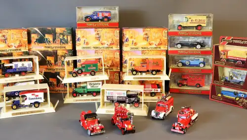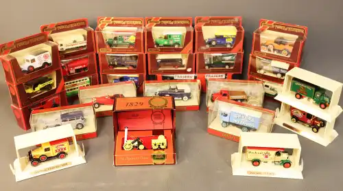 MATCH BOX, Models of Yesteryear. Lot de 27 véhicules publicitaires, dont Michelin, Guiness, Chubb's, Moosehead beer, Frazer's..., sous boîtes.