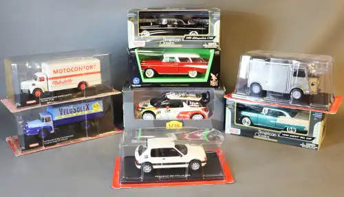 Lot de 8 véhicules GARAGE Hachette Collection, MOTORMAX American Classics, LUCKY DIE CAST, PEUGEOT Hachette Collection, CITROEN Hachette Collection, CITROEN Rallye.