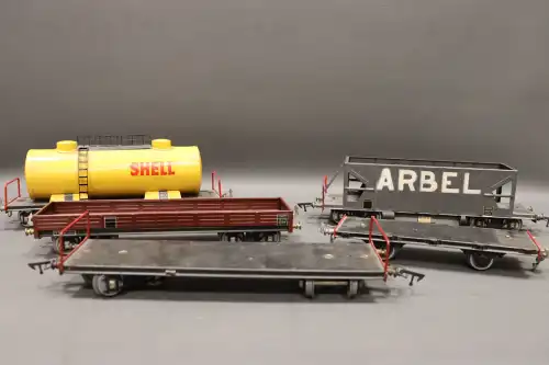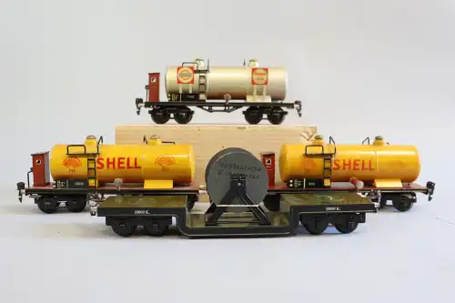 JOUEF, lot comprenant : locomotive vapeur et tender réf 887000 ; locomotive motrice réf 8572 ; locomotive vapeur réf 8293 ; locomotive motrice réf 8531 ; 4 wagons transports, en boite, en l'état.