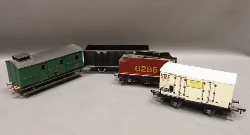 JOUEF, lot comprenant : locomotive vapeur et tender réf 827300 ; locomotive motrice réf 853900 ; locomotive vapeur 829200 et 2 wagons. En boite, en l'état.