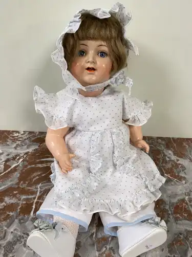 Joint : Poupée tête biscuit, THE PROMENADE COLLECTION, Elisabeth-A, 17930J. Corps composite, bras et jambes biscuit. Taille : 39 cm
