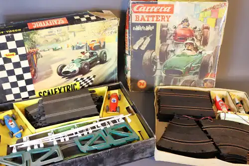 Lot de 32 véhicules de course. Dont ELIGOR, CORGI, SOLIDO. Sous boîte (sauf pour une voiture). Comprend deux éditions limitée.