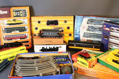 JOUEF, FLEISCHMANN, LIMA, HORNBY, LILIPUT... Lot de 13 trains dont quelques circuits.