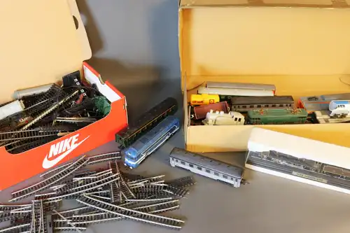 JOUEF et divers. Lot de 2 boîtes de locomotives et circuits (plus accessoires).