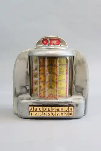 SEEBURG WALL-O-MATIC. Jukebox de table en métal, sélection de chansons des années 1950-1960 : Elvis Presley, Roy Orbison, Connie Francis, Chuck Berry...