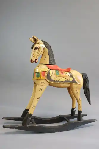 Cheval à bascule en bois peint polychrome. H.: 75 cm - L. 83 cm