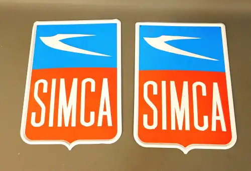 SIMCA. Deux plaques en tôle émaillée. 34,5 x 24 cm