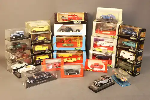 Lot de 20 véhicules en boîte dont SOLIDO, VEREM, CORGI, MATCH BOX, ROAD CHAMPS, SEEROL, VANGUARDS.
